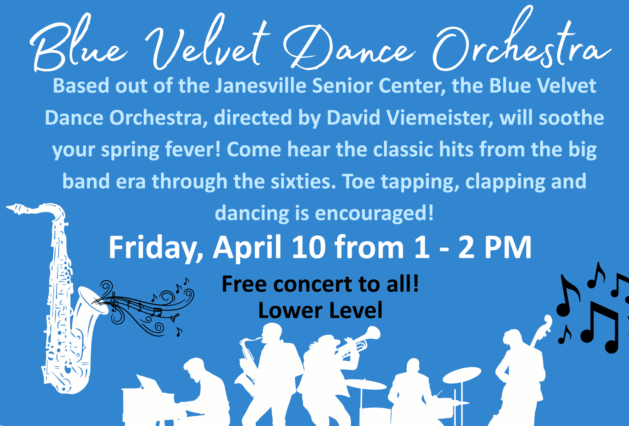 Back to All Events Blue Velvet Dance Orchestra Friday, April 10, 2026 1:00 PM 2:00 PM The Gathering Place 715 Campus Street Milton, WI, 53563 United States (map) Google Calendar ICS